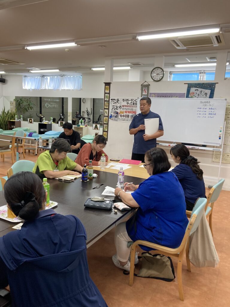勉強会の様子です。利用者さんのことをみんなで共有し、もりガーデンで有意義に過ごして頂けるよう話し合いをしております。
